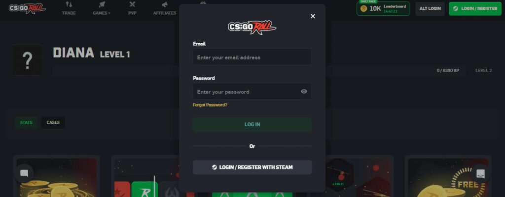 Aby rozpocząć aktywację kodu, zaloguj się na swoje CSGORoll account za pomocą Steam. Proces logowania jest szybki, bezpieczny i nie wymaga podawania dodatkowych danych. Po zalogowaniu uzyskasz dostęp do panelu użytkownika, skrzynek i sekcji bonusów.