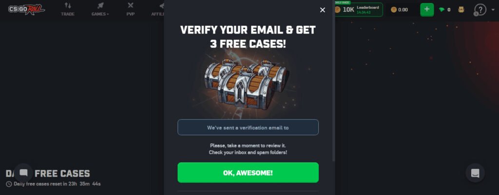 Aktywacja CSGORoll Promo Code zapewnia nowym użytkownikom konkretny pakiet startowy: trzy darmowe skrzynki po weryfikacji konta oraz 5% bonus do pierwszego doładowania. To najlepszy sposób, aby sprawdzić działanie platformy i poznać tryby bez angażowania własnych środków od pierwszych minut.